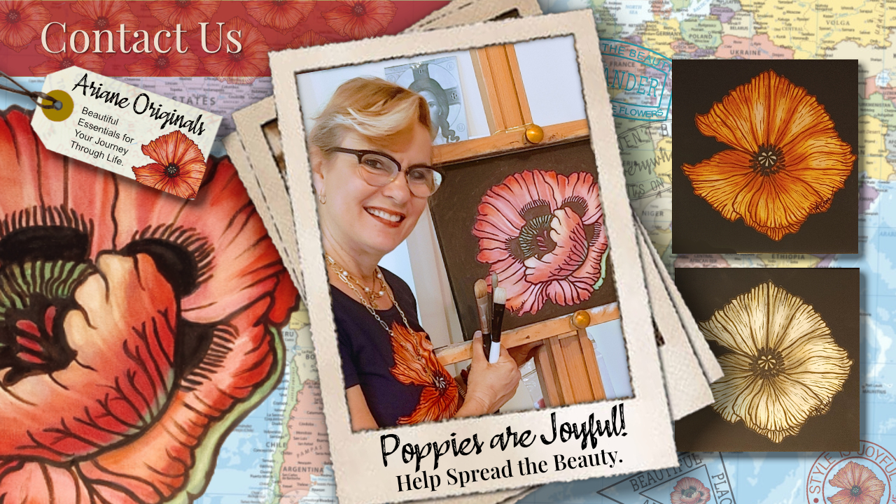 Want to bring some joy to your community and customers? Stock Ariane's original designs in your location and she will paint a poppy for you! You choose the poppy and the color! One poppy can be an impetus for change. To refresh. To beautify. To inspire happiness.